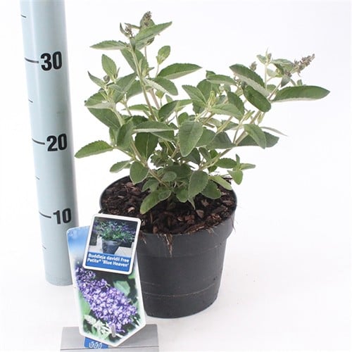 De Buddleja davidii Free petite Blue Heaven is een dwergvlinderstruik. Deze laagblijvende vlinderstruik wordt niet hoger dan 70 centimeter, waardoor deze heester ook prima op een terras in pot of op een balkon geplaatst kan worden. De dwergvlinderstruik is ideaal voor balkons en kleinere tuinen door zijn compacte groei.