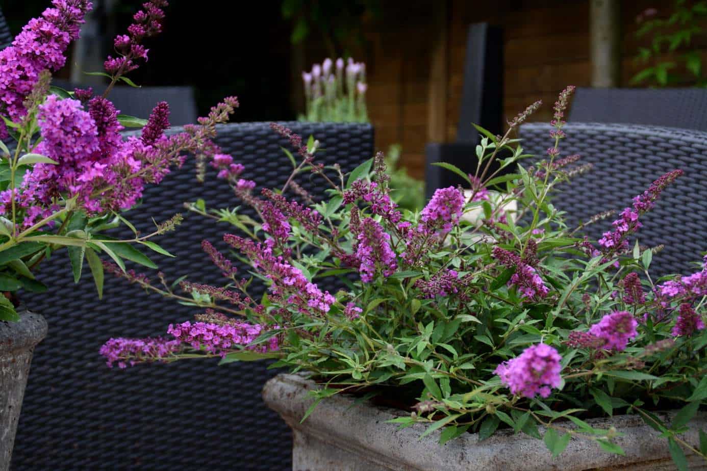 De Buddleja Free Petite Dark Pink is een laagblijvende vlinderstruik en wordt uiteindelijk zo’n 70 centimeter. Deze dwergvlinderstruik bloeit in de maanden juli en augustus donker paarse bloemen die als een magneet werken voor vlinders en bijen! De vlinderstruik is niet wintergroen, maar wel goed winterhard. De dwergvlinderstruik is ideaal voor balkons en kleinere tuinen door zijn compacte groei.