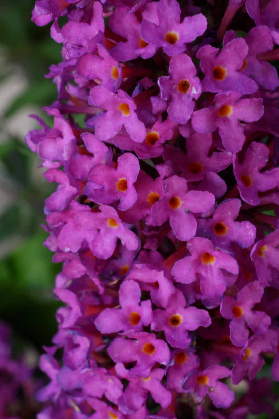 De Buddleja davidii Free Petite Tutti Fruitti wordt ook wel dwergvlinderstruik genoemd door zijn compacte groei, hij bereikt uiteindelijk een hoogte van zo’n 70 centimeter. De Buddleja Tutti Fruitti bloeit in de maanden juli en augustus en met roodpaarse bloemen, ook deze vlinderstruik trekt bijen en vlinders aan.
