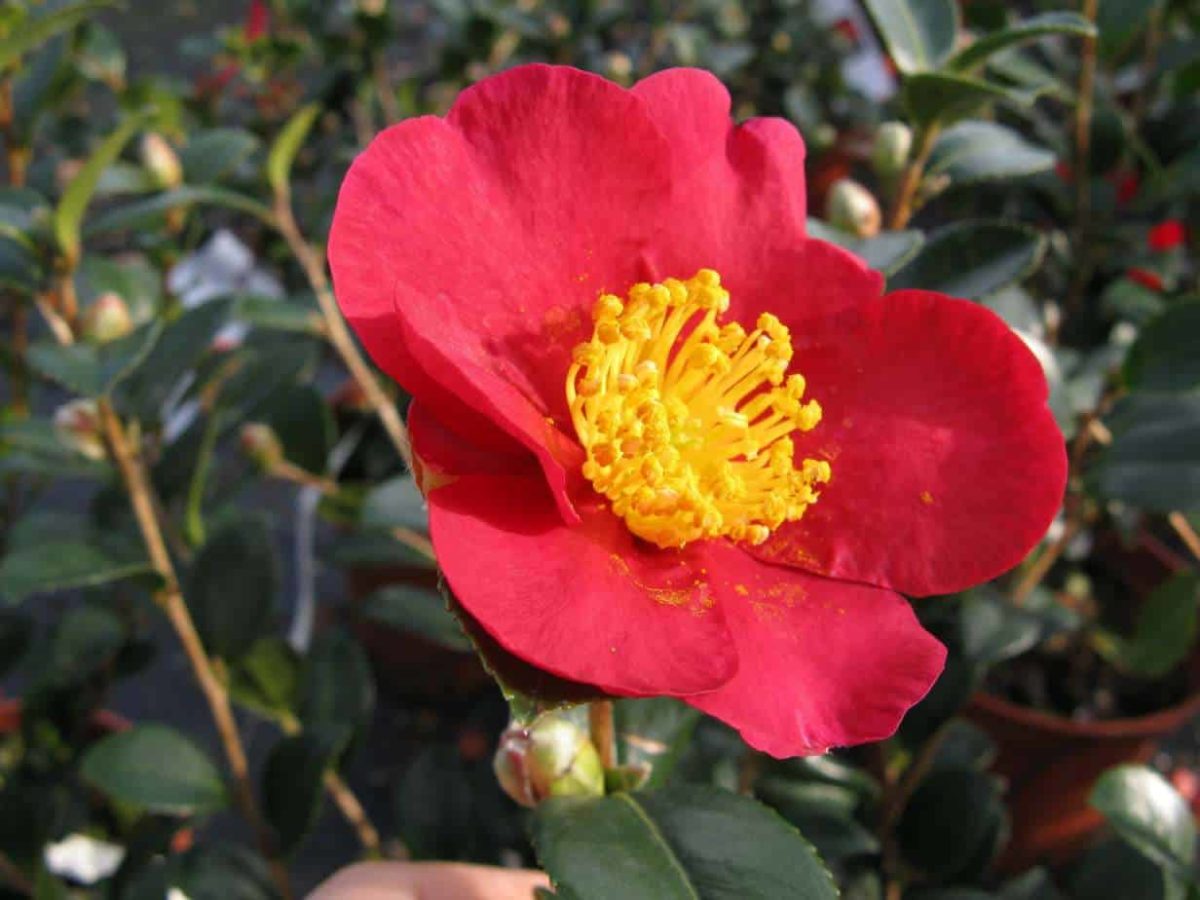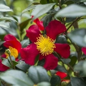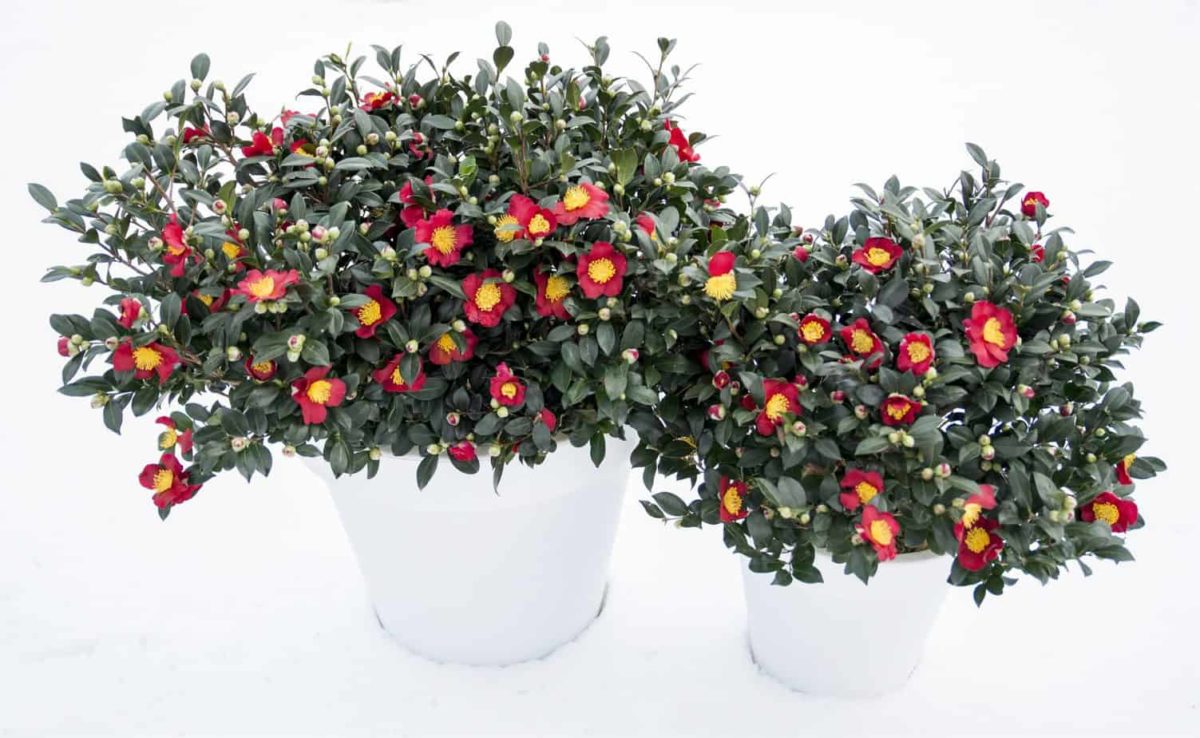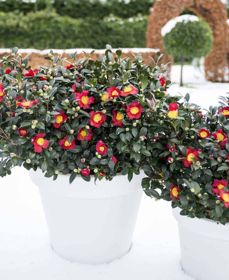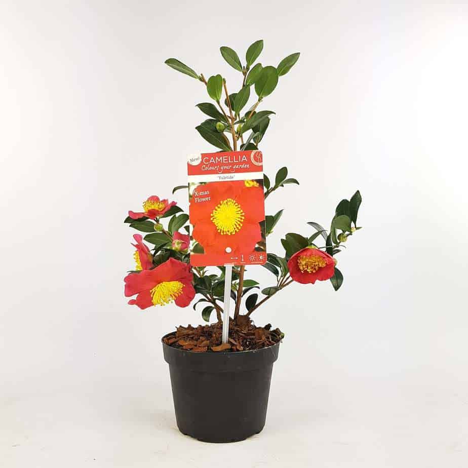 De Camellia sas. Yuletide is een winterbloeiende Camelia. Deze wintergroene heester bloeit in het najaar van november tot en met januari met prachtige rode bloemen met een geel hart. Deze winterbloeier wordt uiteindelijk zo’n 150cm hoog en kan goed geplaatst worden in bijvoorbeeld een pot op het terras of in de volle grond.