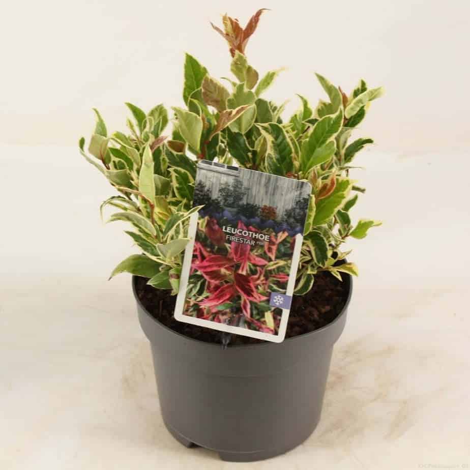 Deze Leucothoe is een mutant gevonden uit de Leucothoe walteri ‘Zeblid’’. Firestar is compacter dan ‘Zeblid’. Daarnaast zijn de jonge uitlopers rood gekleurd met een gelijkmatige witte rand. Deze witte rand geeft de Leucothoe walteri Firestar een bijzonder contrast met het onderliggende groene blad. Leucothoe walteri Firestar houdt van een zonnige standplaats. De plant is goed winterhard en is in pot op het terras een bijzondere aanvulling in de tuin.