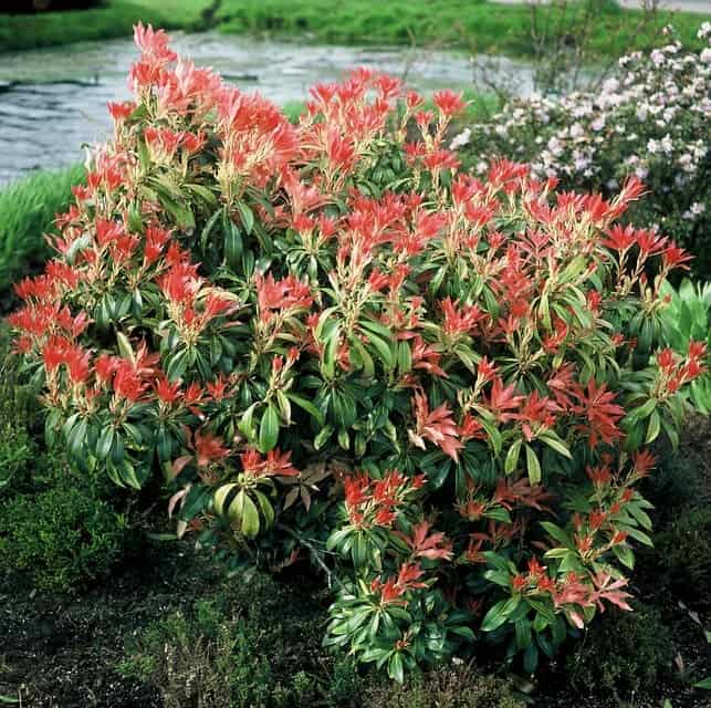 Pieris Forest Flame wordt in het Nederlands ook wel Rotsheide genoemd. Deze wintergroene sierheester heeft een opvallend verkleurend blad, het verkleurd langzaam van felrood, naar roze, via geel naar groen. Rond de maand juni verschijnt er nogmaals nieuw jong rood schot, maar dan is de kleur al minder intens. Pieris Forest Flame bloeit in de maanden april en mei met een witte bloem. De volwassen hoogte van deze struik is ruim 100 centimeter.
