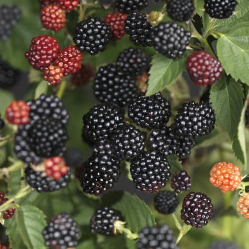 De Rubus fruticosus ‘Black Satin’ is een doornloze bramenstruik en geeft in de periode van augustus tot oktober heerlijke vruchten die gegeten kunnen worden. Belangrijk voor deze fruitplant is dat hoe meer zon hij krijgt hoe beter de oogst is.