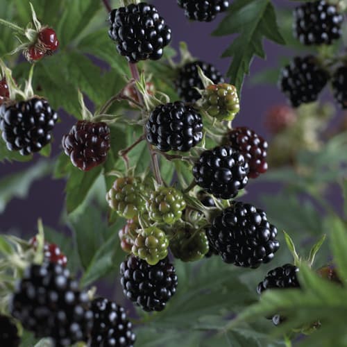 De Rubus Thornless Evergreen ofwel doornloze braam geeft in de periode van juli tot augustus heerlijke vruchten die gegeten kunnen worden. Belangrijk voor deze fruitplant is dat hoe meer zon hij krijgt hoe beter de oogst is.