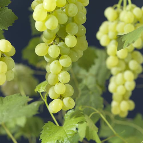 | Verzorging | Oogsten van de druif rond augustus/september, snoeien van de wijnstok in januari/december. De uitlopers van deze wijnrank moeten geleidt worden door een pergola-constructie of spandraden. De druiventrossen hangen dan mooi naar beneden. |
