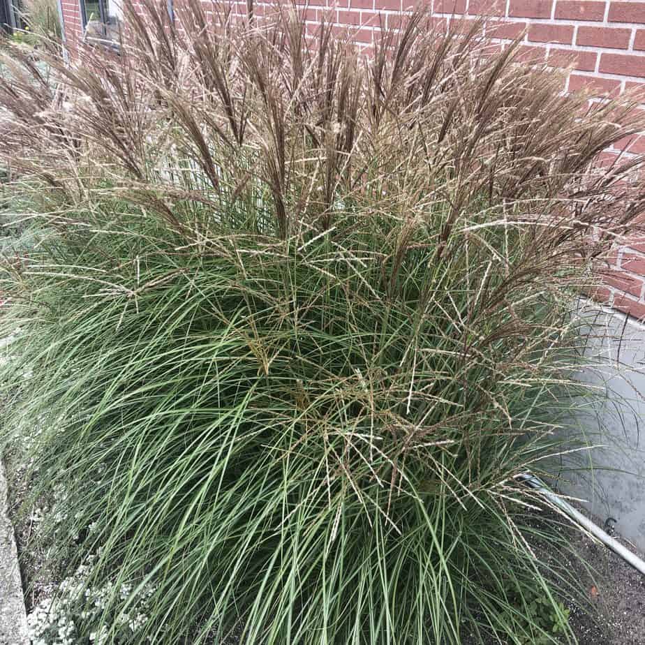 De Miscanthus Sinensis ofwel Prachriet is 1 van de minst woekerende siergrassen. Hij groeit in polvorm en is met zijn recht opgaande groei en schitterende pluimen een prachtige verschijning in uw tuin. Dit prachtriet heeft lange smalle bladeren en de bladeren hangen mooi overi in een boog. U kunt dit siergras goed als solitair aanplanten met bijvoorbeeld bodembedekkers onder aan de voet. De Miscanthus sinensis Kleine Silberspinne bloeit in de maanden augustus en september met zilver – witte pluimen en bereikt uiteindelijk een hoogte van zo’n 150cm.