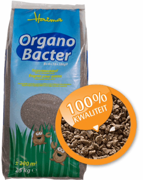Haima Organo-Bacter is een hoogwaardige samengestelde organische gazonmeststof met micro-organismen en een hoog kaligehalte. Haima Organo-Bacter brengt de nodige voedingselementen aan, zorgt voor een evenwichtige groei en activeert het biologisch bodem leven. Voorkomt mos- en viltvorming. Zacht en vochtig weer bevordert de goede werking van deze meststof. Speciaal bij gazons is een versterkte wortelvorming waarneembaar.