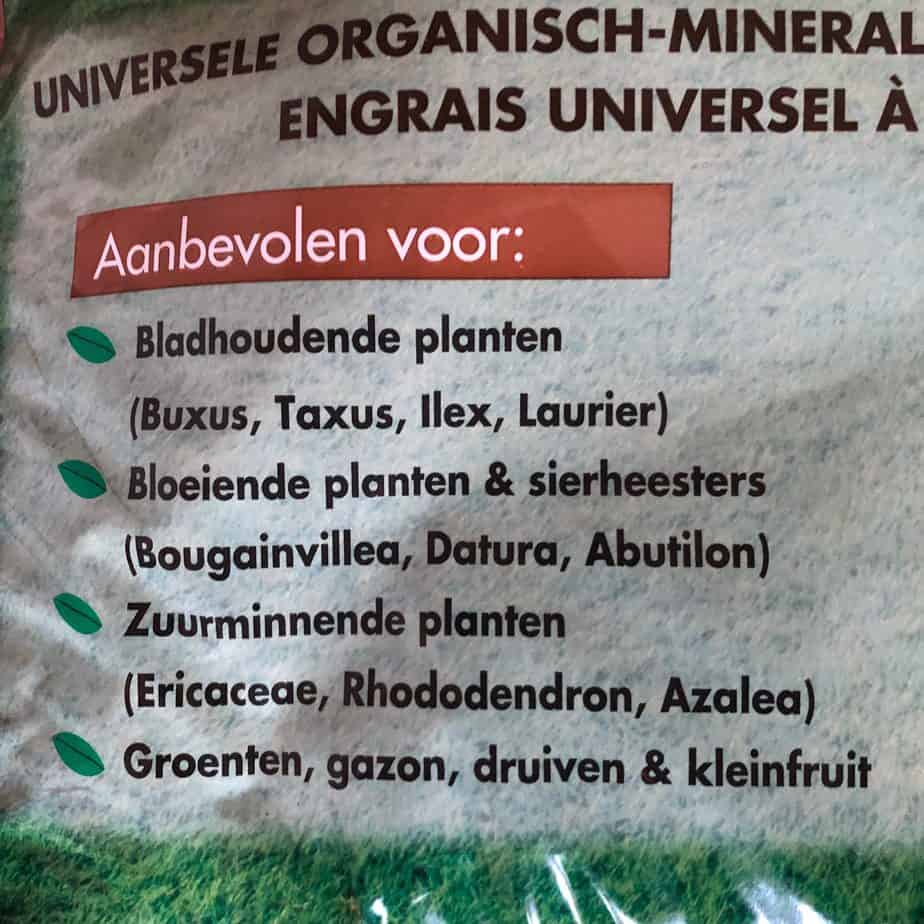 Van Haima kun je best de gewone organische meststof pakken, deze is ook te gebruiken voor de rest van je tuin. In het voorjaar strooien aan de voet van de plant is voldoende!