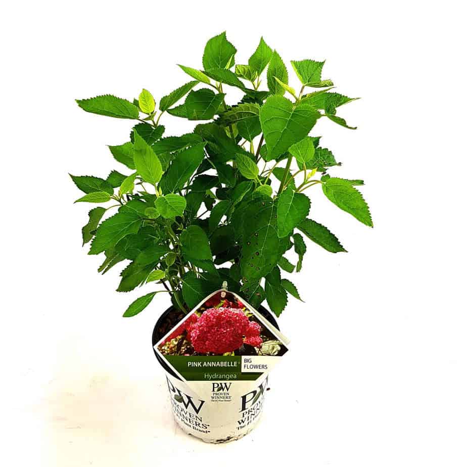 De Hydrangea arborescens Pink Annabelle is de roze variant van de Hydrangea Strong Annabelle. Deze hortensia bloeit op stevige takken met prachtige roze bloembollen in de periode van juni tot augustus. Net als bij de Hydrangea Strong Annabelle zal de Pink Annabelle niet snel gaan doorhangen door het gewicht van de bloemen doordat hij stevige takken heeft. De Hydrangea Pink Annabelle bereikt uiteindelijk een hoogte van ongeveer 100 centimeter.