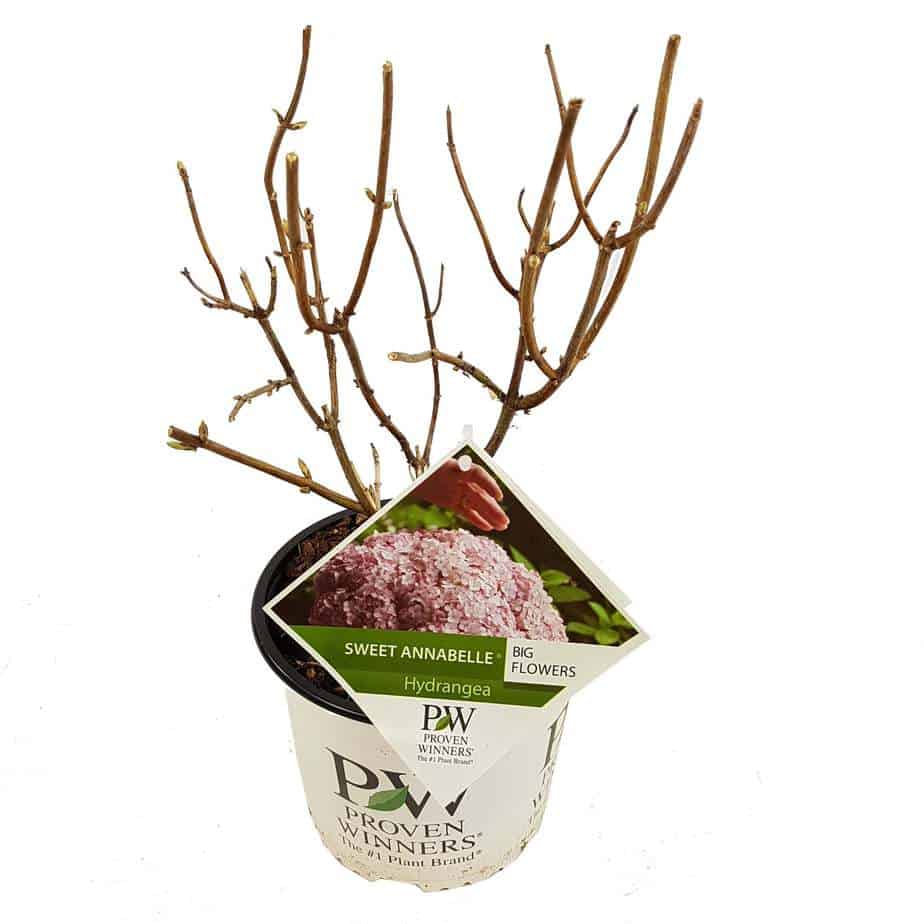 De Hydrangea arborescens Sweet Annabelle is de lichtroze variant van de Hydrangea Strong Annabelle. Deze hortensia bloeit op stevige takken met prachtige lichtroze bloembollen in de periode van juni tot augustus. Net als bij de Hydrangea Strong Annabelle zal de Sweet Annabelle niet snel gaan doorhangen door het gewicht van de bloemen doordat hij stevige takken heeft. De Hydrangea Sweet Annabelle bereikt uiteindelijk een hoogte van ongeveer 100 centimeter.