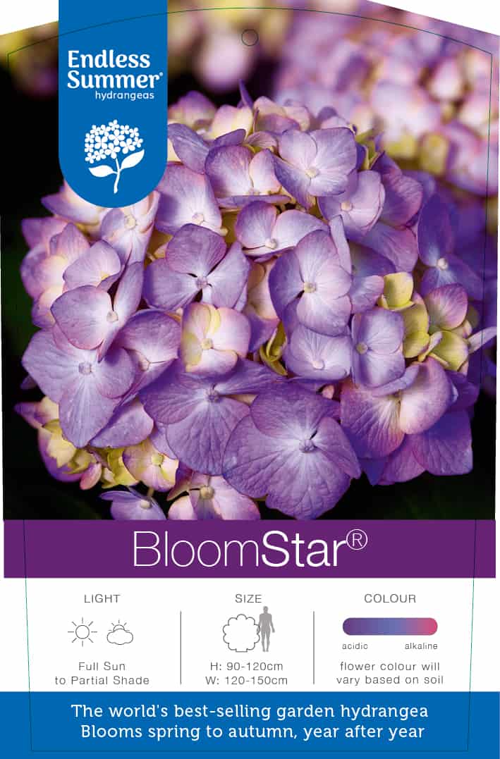 De BloomStar® is één van de nieuwste Endless Summer soorten. Dankzij de sterke genetica van Twist-n-Shout® krijgt deze hortensia grote, mooie en kleurrijke bloemen. Daarnaast heeft de BloomStar® prachtige rood-paarse stelen en een diep groen blad met rode stelen en nerven. Dit, in combinatie met robuuste, sterke takken en een hoge ziekteresistentie zorgt ervoor dat de BloomStar® de grote ster wordt van elke tuin, terras of balkon!
