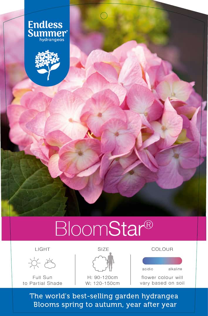 De BloomStar® is één van de nieuwste Endless Summer soorten. Dankzij de sterke genetica van Twist-n-Shout® krijgt deze hortensia grote, mooie en kleurrijke bloemen. Daarnaast heeft de BloomStar® prachtige rood-paarse stelen en een diep groen blad met rode stelen en nerven. Dit, in combinatie met robuuste, sterke takken en een hoge ziekteresistentie zorgt ervoor dat de BloomStar® de grote ster wordt van elke tuin, terras of balkon!