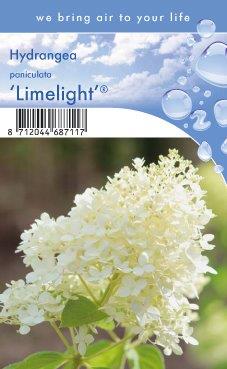 Hydrangea paniculata ‘Limelight’ is een pluimhortensia of boerenhortensia met stevige takken. Die minder snel doorbuigen door regen en wind. De bladeren zijn groen van kleur en licht bedekt met haartjes. Hortensia’s zijn geliefd om hun rijke en langdurige bloei. Hydrangea paniculata ‘Limelight’ bloeit van juni tot en met september met grote groen-witte (lime) pluimvormige spitse bloemtrossen. In het najaar kleuren de bloemen roze. Tot diep in de winter behouden ze hun sierwaarde. De kleur van de bloemen kan sterk veranderen door de zuurgraad van de grond. Op rijke grond zijn de bloemen limekleuriger, op armere grond witter. Hydrangea paniculata ‘Limelight’ is winterhard en bladverliezend. De bladeren verkleuren in het najaar van groen naar paars, voordat ze verwelken en eraf vallen. De verdorde bloemen zijn in de winter nog lang decoratief. Als je deze pluimhortensia elk voorjaar snoeit, wordt de plant minder hoog, maar krijgt wel meer en grotere bloemen. De maximale hoogte is circa 125 cm.