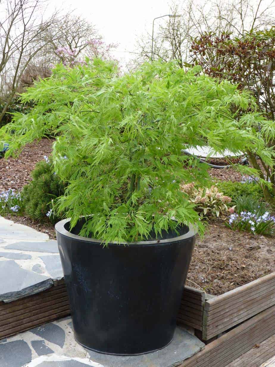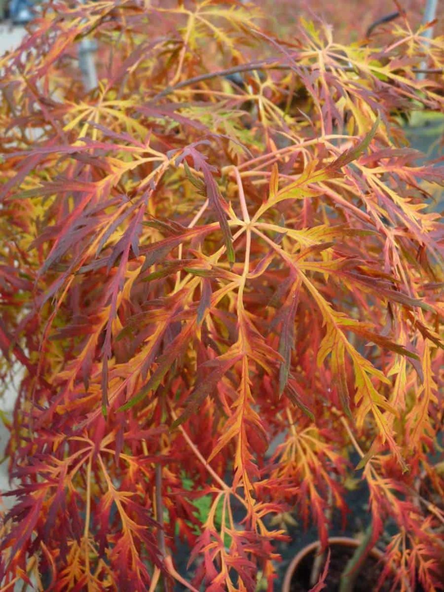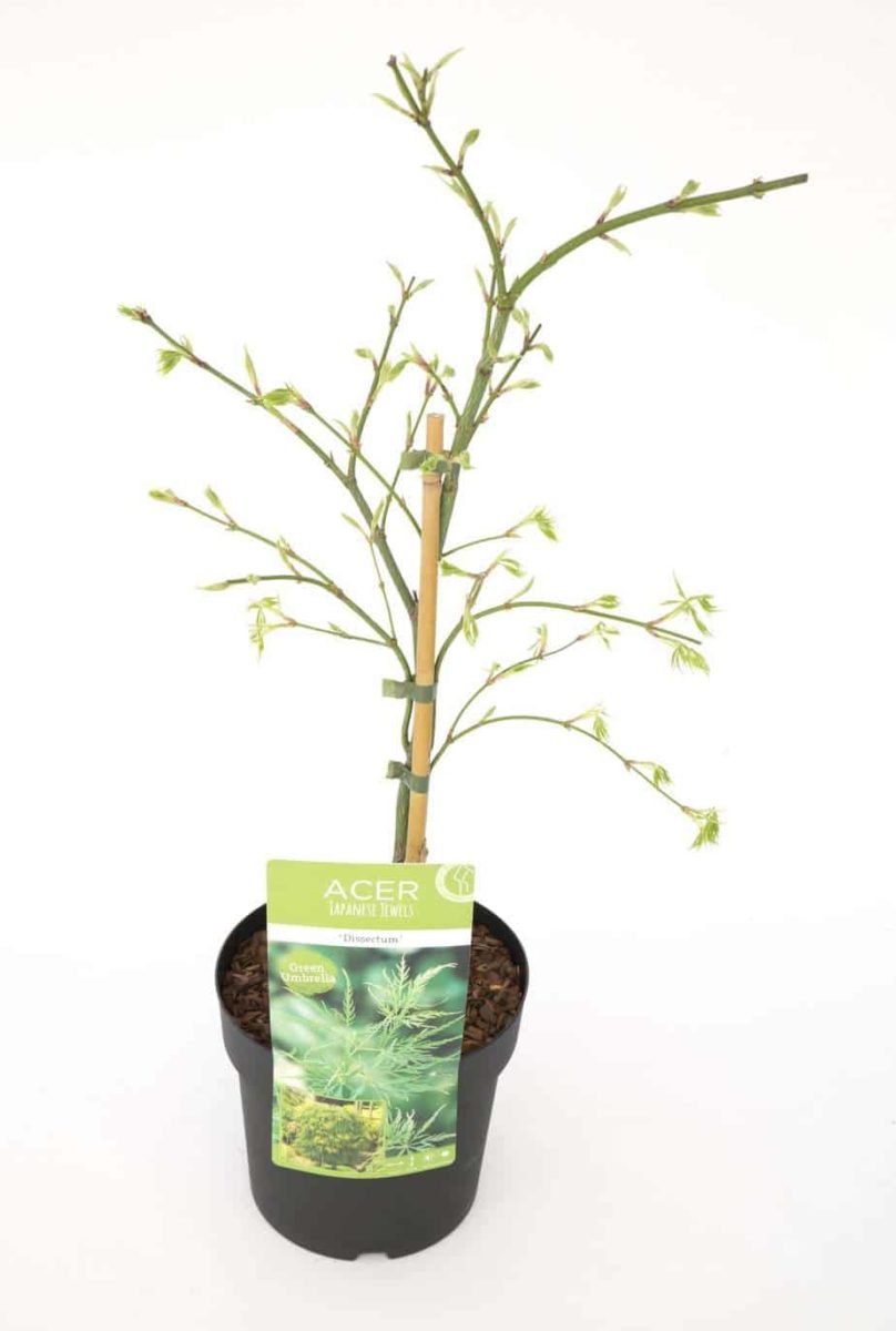 De Acer palmatum Dissectum is een laagblijvende Japanse Esdoorn, deze Acer bereikt een hoogte van zo’n 150cm. Het blad van deze Acer verkleurt door het jaar heen van frisgroen, naar geel en oranje in de herfst. De breedte van deze Acer kan zo’n 250cm worden.