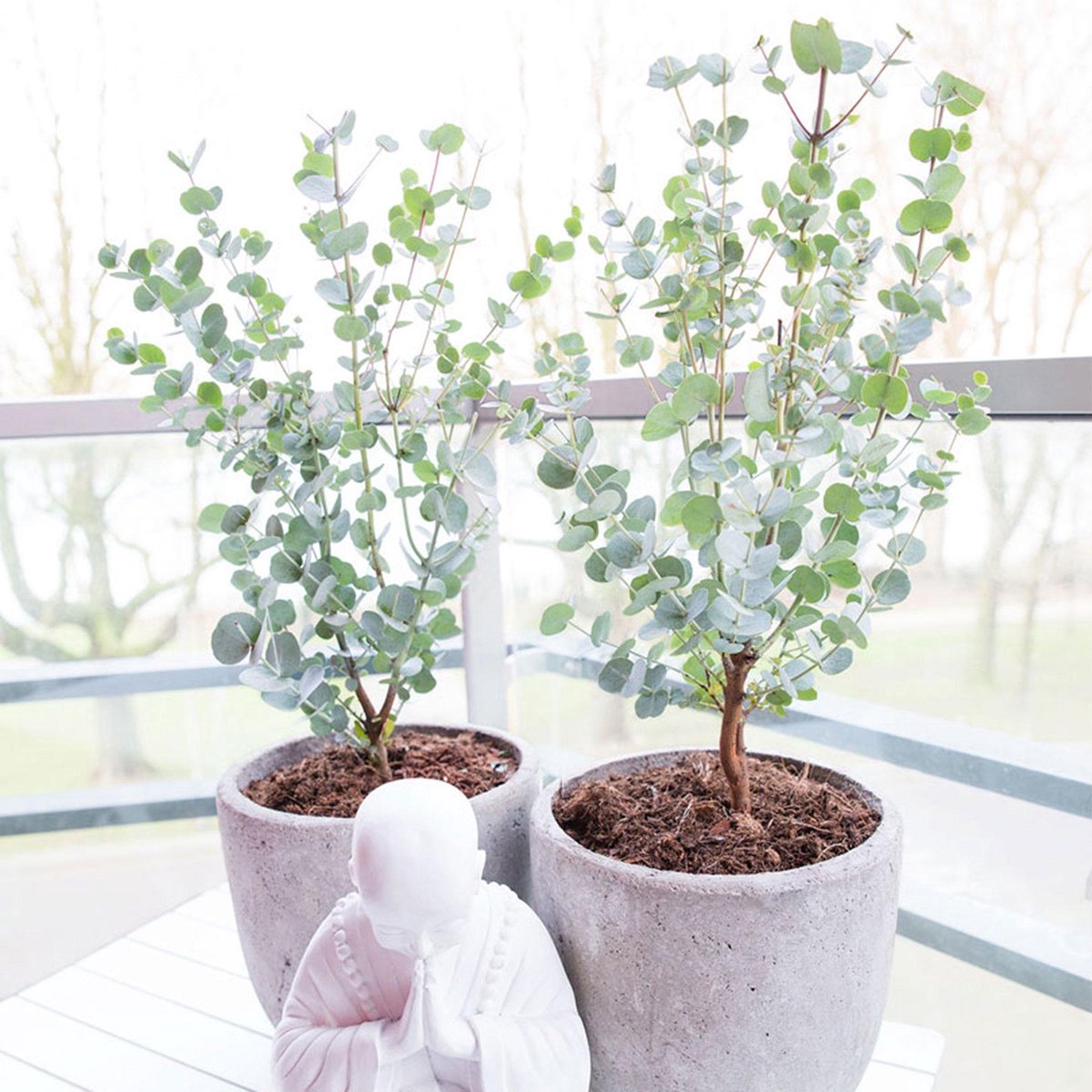 De Eucalyptus of “gomboom” is vanwege zijn prachtige grijsblauwe bladeren een hippe kamerplant net als de gelijkende Eucalyptus Baby Blue. Deze prachtige plant is niet alleen een blikvanger, maar ruikt ook nog eens heerlijk naar menthol.