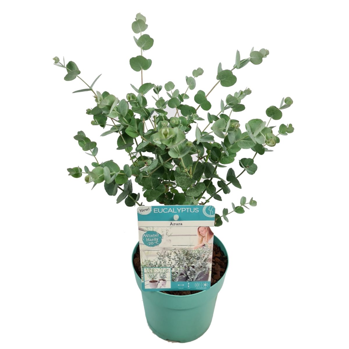 De Eucalyptus gunni Azura is winterhard (tot wel -25 graden Celsius), deze plant kan zowel binnen staan als buiten. In buiten in de volle grond kan deze plant een hoogte bereiken tot wel 250 centimeter. Binnen in pot zal hij zich beperken tot 75 centimeter.