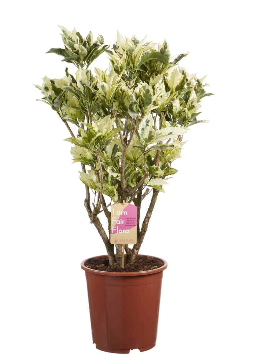De Croton, ofwel de Codieaum variegatum, staat bekend om zijn vele verschillende verschijningen. Deze Tamara valt op door de wat kleinere, licht gekrulde bladeren. Doordat de bladeren vooral veel lichter zijn dan bij de meeste andere planten, is het een plant die snel opvalt. Daarnaast zijn Crotons redelijk makkelijk te verzorgen: kies een lichte plek uit en zorg voor voldoende water en je hebt er lang plezier van! Dit is een mooie vertakte Croton in een pot van 27cm diameter.