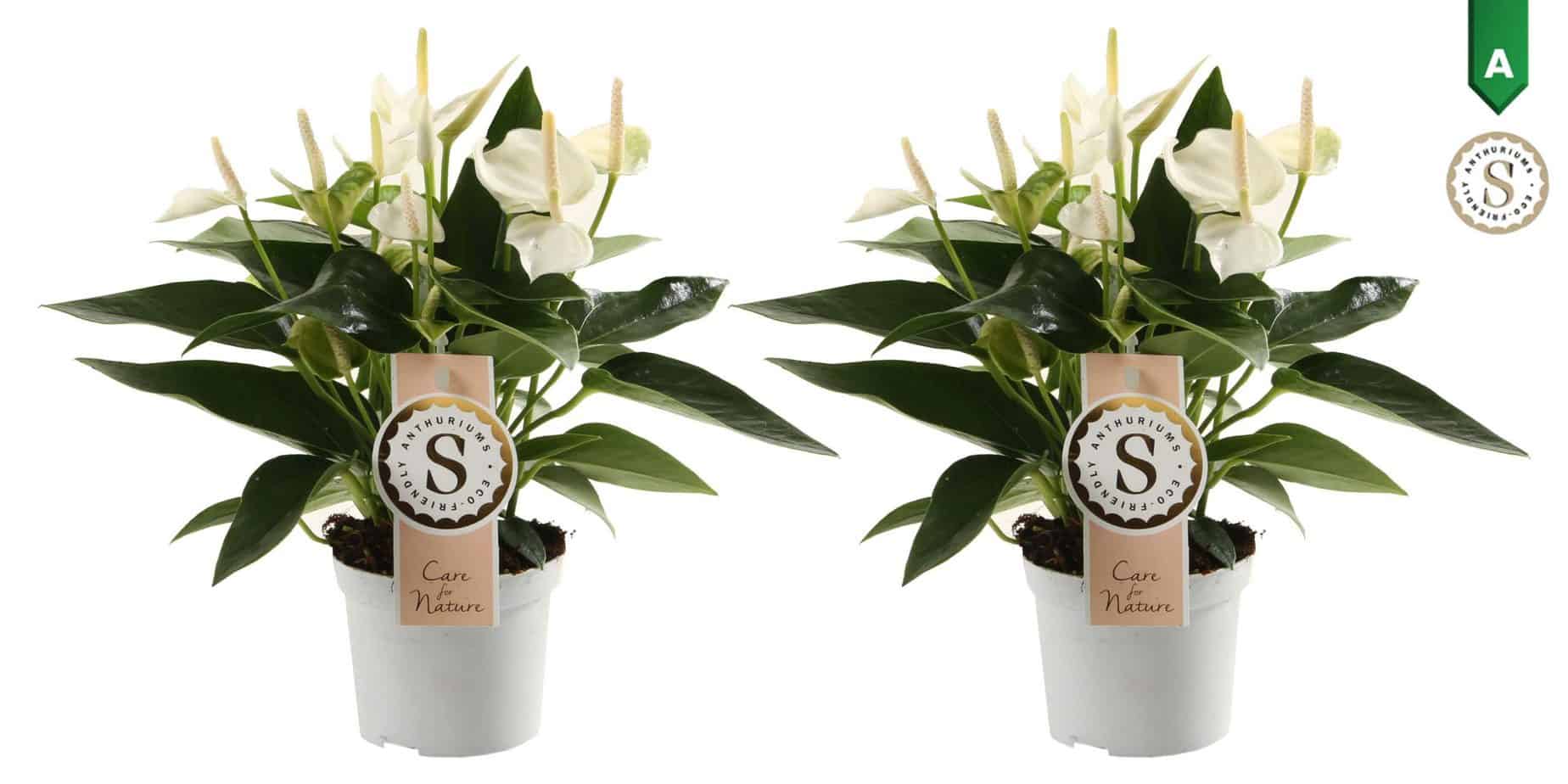 Breng een exotische sfeer in huis met de Anthurium ‘White Champion’ met zijn opvallend witte bloemen. De Anthurium is een trendy schoonheid. Een sieraad in uw huis.