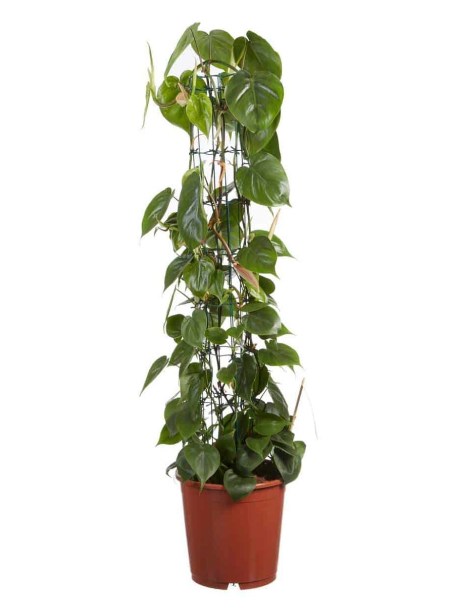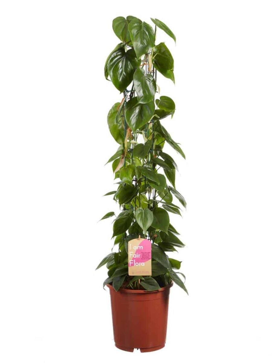 “De Philodendron scandens is een groene klimplant, die 3 tot 6 meter hoog kan klimmen. Het is een makkelijke kamerplant, waarvan de bladeren een hartvorm hebben. In het Engels wordt deze plant dan ook wel “Heartleaf Philodendron” of zelfs “sweetheart plant” genoemd. Deze plant klimt omhoog over een rek in een pot van 24cm diameter. Deze Scindapsus is een van de planten die de lucht in huis het beste kan zuiveren! Dat betekent dat hij niet alleen CO2 omzet in zuurstof, maar dat hij ook allerlei schadelijke stoffen uit de lucht haalt. Perfect voor woningen in de stad en voor huizen met weinig ventilatie!