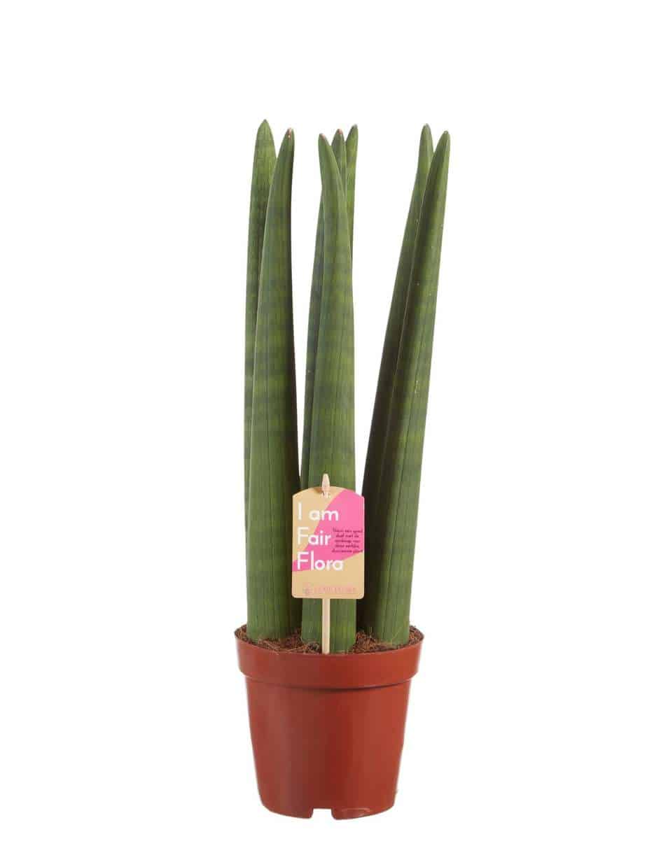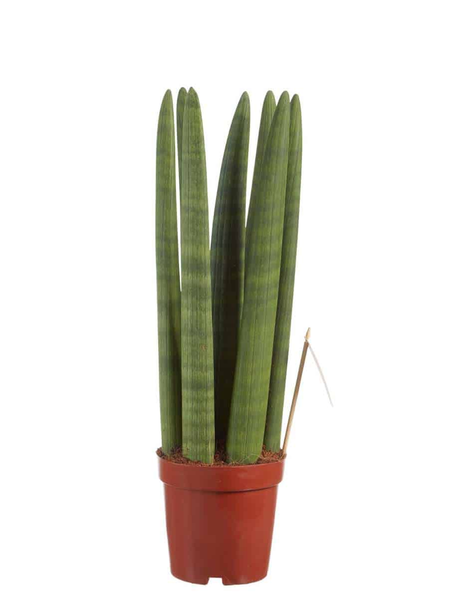 De Sansevieria is een heel bekende kamerplant en wordt ook wel “vrouwentong” genoemd. Oorspronkelijk komen deze planten uit Afrika, Madagaskar en zuid Azië. Ze staan er bekend om dat ze extreem makkelijk te verzorgen zijn: ze hebben nauwelijks water nodig en ook de standplaats zijn ze niet al te kieskeurig in. Daarnaast zuiveren ze ook nog eens de lucht! De Straight bestaat uit dikke, rechtopstaande cilindrische bladeren. Deze Sansevieria is ook een van de planten die de lucht in huis kan zuiveren! Dat betekent dat hij niet alleen CO2 omzet in zuurstof, maar dat hij ook allerlei schadelijke stoffen uit de lucht haalt. In tegenstelling tot de meeste planten, doet de Sansevieria dit voornamelijk ‘s nachts. Perfect voor slaapkamers in woningen in de stad en voor huizen met weinig ventilatie!