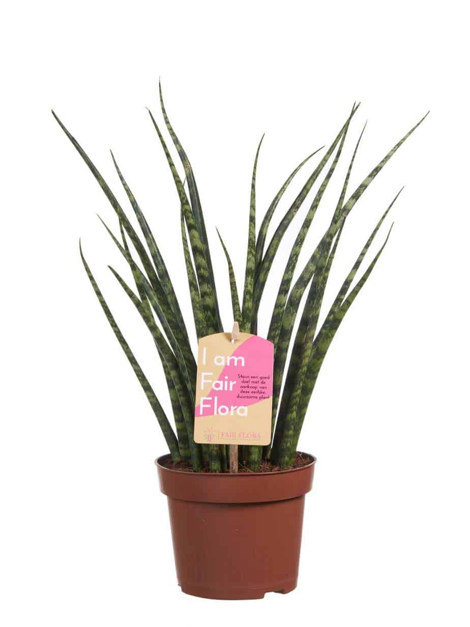 “De Sansevieria is een heel bekende kamerplant en wordt ook wel “vrouwentong” genoemd. Oorspronkelijk komen deze planten uit Afrika, Madagaskar en zuid Azië. De Fernwood bestaat uit donkergroene cilindrische bladeren, waarbij de Mikado recht en de Punk krom is. Een Sansevieria is extreem makkelijk te verzorgen, doordat hij best wel even zonder water kan en niet heel veel eisen stelt aan zijn standplaats. Een perfecte plant dus voor iemand die vaak een periode weg is van huis, of voor de student die wel wat groen wil, maar niet zoveel bezig wil zijn met de verzorging ervan. Deze Sansevieria is ook een van de planten die de lucht in huis kan zuiveren! Dat betekent dat hij niet alleen CO2 omzet in zuurstof, maar dat hij ook allerlei schadelijke stoffen uit de lucht haalt. In tegenstelling tot de meeste planten, doet de Sansevieria dit voornamelijk ‘s nachts. Perfect voor slaapkamers in woningen in de stad en voor huizen met weinig ventilatie!