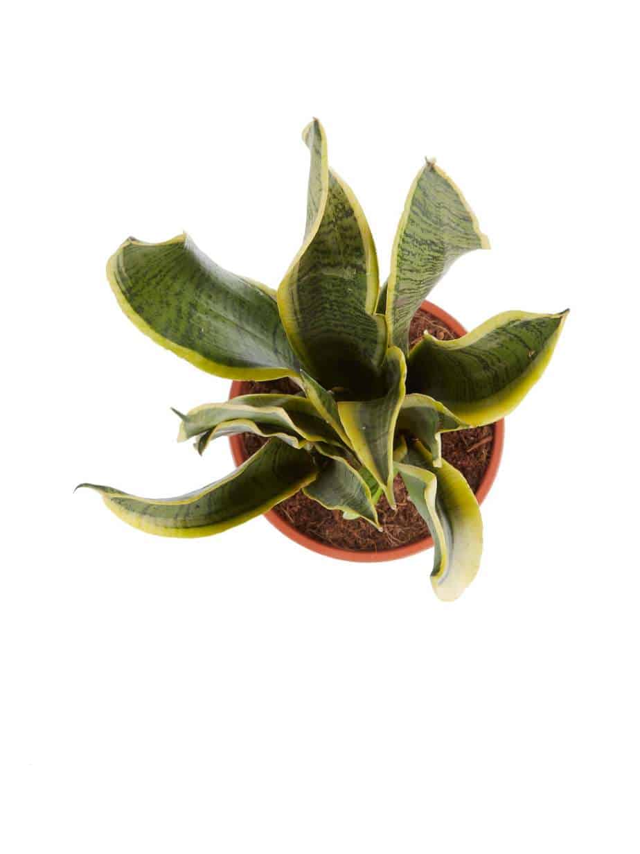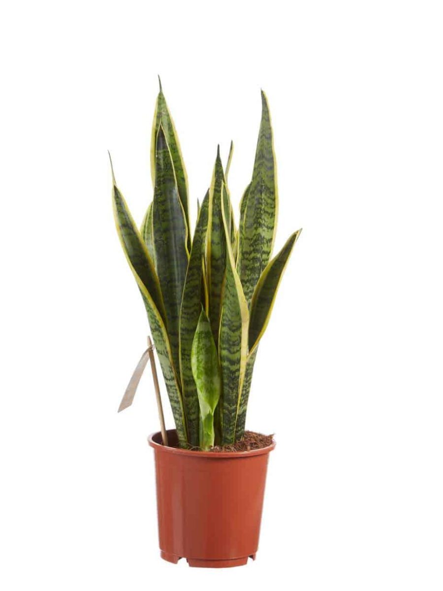 “De Sansevieria is een heel bekende kamerplant en wordt ook wel “vrouwentong” genoemd. Oorspronkelijk komen deze planten uit Afrika, Madagaskar en zuid Azië. De Laurentii is een echte klassieke Sansevieria, met grote platte bladeren met een gele rand. Een Sansevieria is extreem makkelijk te verzorgen, doordat hij best wel even zonder water kan en niet heel veel eisen stelt aan zijn standplaats. Een perfecte plant dus voor iemand die vaak een periode weg is van huis, of voor de student die wel wat groen wil, maar niet zoveel bezig wil zijn met de verzorging ervan. Deze Sansevieria is ook een van de planten die de lucht in huis kan zuiveren! Dat betekent dat hij niet alleen CO2 omzet in zuurstof, maar dat hij ook allerlei schadelijke stoffen uit de lucht haalt. In tegenstelling tot de meeste planten, doet de Sansevieria dit voornamelijk ‘s nachts. Perfect voor slaapkamers in woningen in de stad en voor huizen met weinig ventilatie!