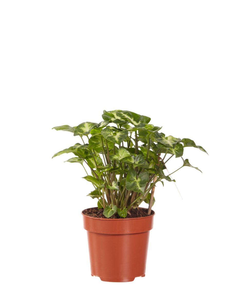 Syngonium is een klimplant die oorspronkelijk voorkomt in tropische regenwouden. De Pixie is een minivariant, waarvan de blaadjes veel kleiner zijn dan bij de meeste soortgenoten. De Pixie komt voornamelijk uit Costa Rica. Een eigenschap van Syngoniums is dat de bladeren van vorm veranderen naar mate de plant ouder wordt. Ook zul je zien dat deze plant ranken en luchtwortels gaat maken, wanneer hij ouder wordt. Het is een makkelijke plant met mooie, pijlvormige bladeren met een interessante bladtekening.
