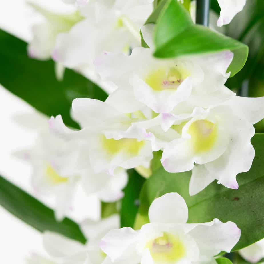De Nobile is een orchidee met een trosje bloemen onder ieder blad. Zij is inheems in Zuid-Oost Azië.