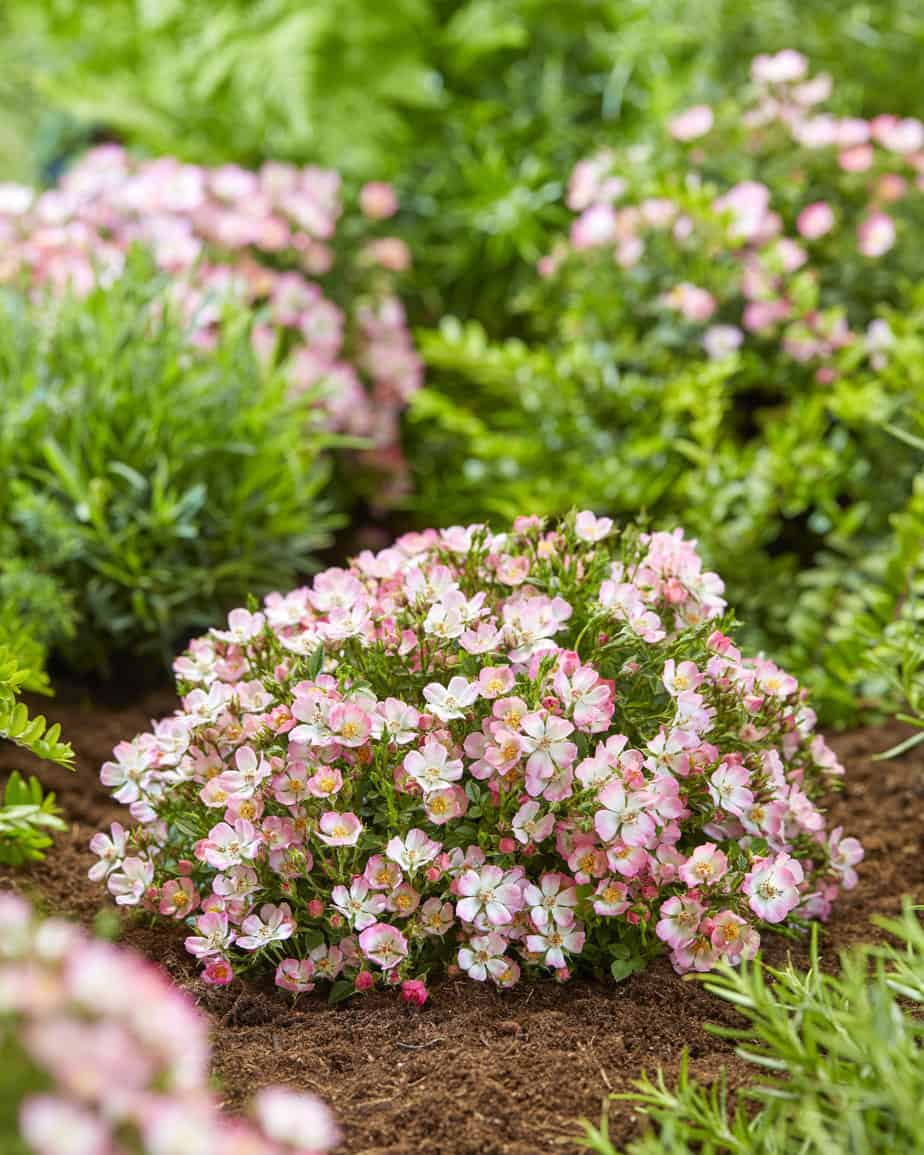 Rosa Cutie Pie is zeker “cute”! Deze schattige roos blijft laag en compact, nl. 15 cm hoog en 20-30 cm breed. Cutie Pie geeft geen vruchten dus hoeft niet gesnoeid te worden. Bovendien heeft Cutie Pie geen doorns hetgeen een zeer groot voordeel is. Cutie Pie bloeit in de zomer zeer uitbundig met roze-witte bloemen en is een aanwinst voor uw tuin of terras. Winterhard tot -25 ºC.