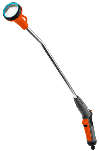 De Classic broes met verlengstuk heeft een lengte van 75 cm. Dit is vooral handig bij grotere oppervlakken, zoals bijv. bloem- of groentebedden, omdat u de sproeistraal voor het midden van het bed kunt bedienen vanuit een staande positie langs de rand.