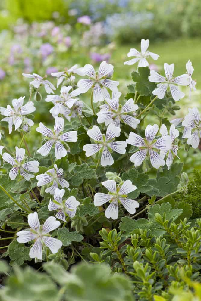 De Geranium Renardii is één van de meest populaire Geranium soorten, deels door zijn viltige blad, maar zeker ook door zijn witte bloemen met purper kleurige aderen. De Geranium Renardii bloeit in de maanden van mei tot en met juli. Deze meerjarige Ooievaarsbek bereikt een hoogte van circa 40-50 centimeter.