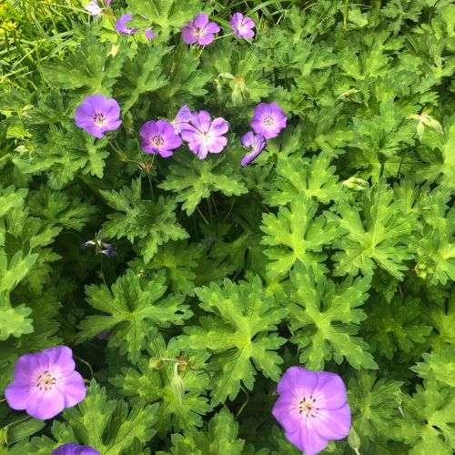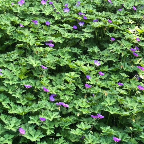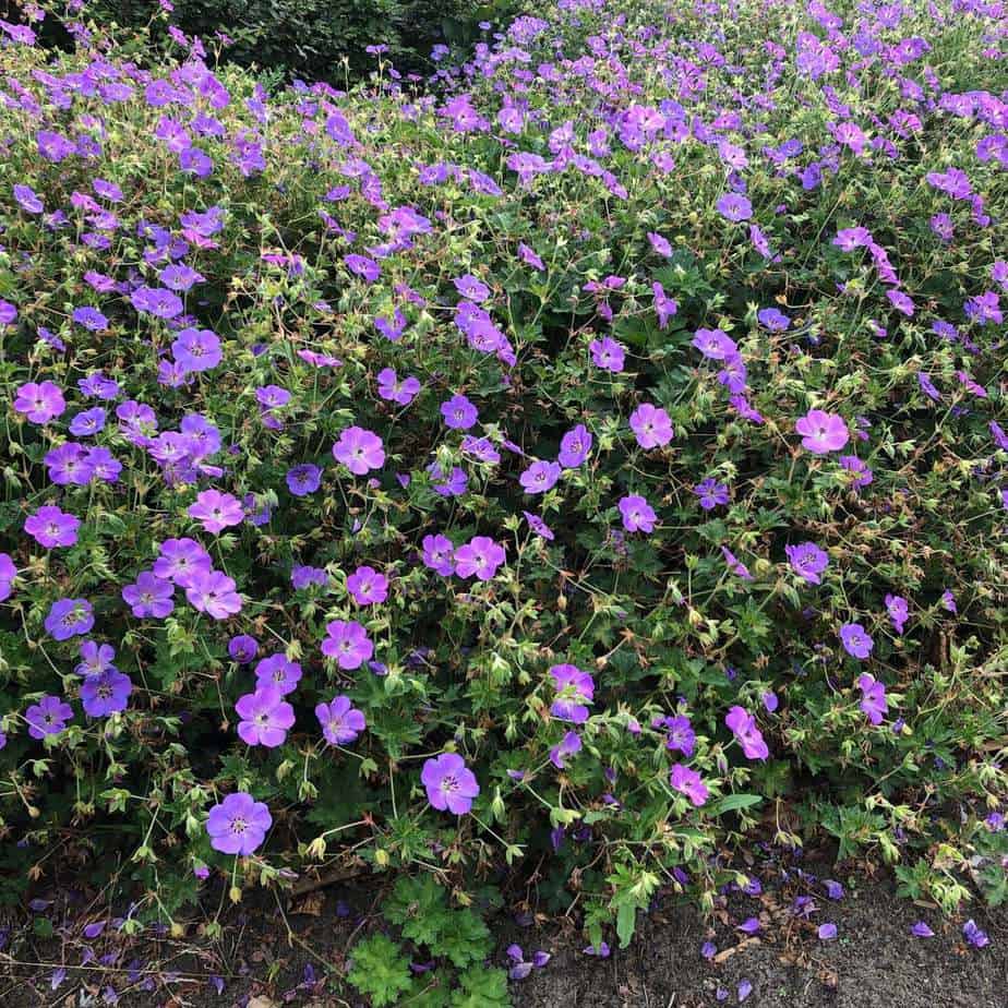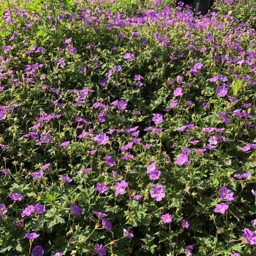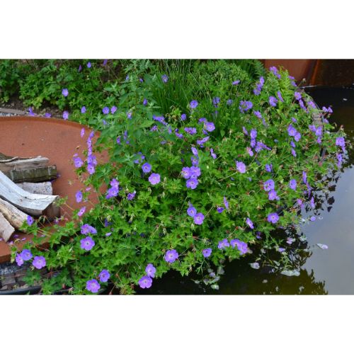 Gebruik van geranium Rozanne ongeveer 9 stuks per m2, je kan deze in de zomer ook terugsnoeien, zo hou je hem compacter.