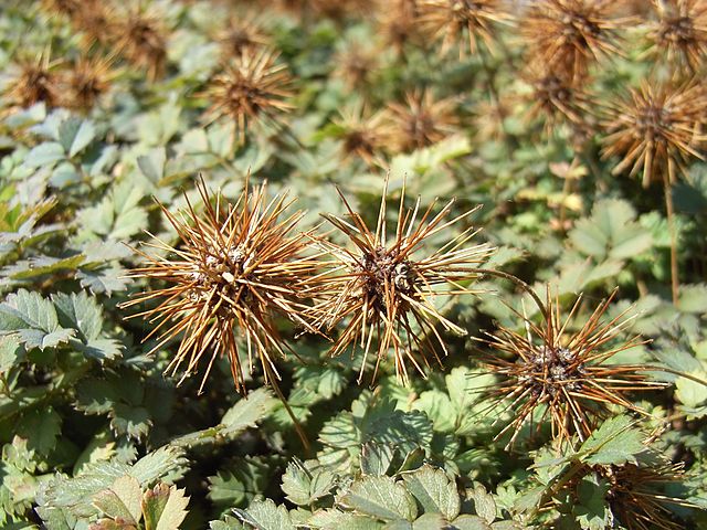 De Acaena Microphylla is een bodembedekker die ook wel het Stekelnootje wordt genoemd. Hij bloeit wit en krijgt in het najaar opvallende rode stekelige vruchten. Het blad van de Acaena is bronsgroen van kleur.