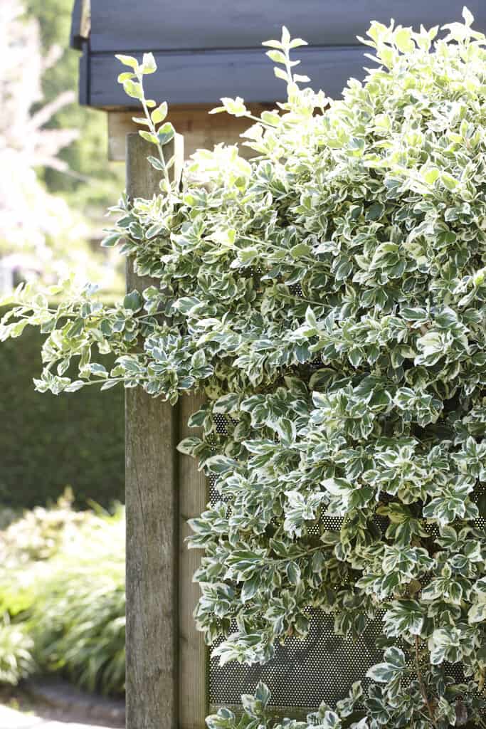 Op de foto zie je een struik met op de achtergrond een hek. Wel kun je de euonymus met hulpmiddelen zoals een rek laten klimmen, al zat dit niet zo hoog zijn als de echte klimmers