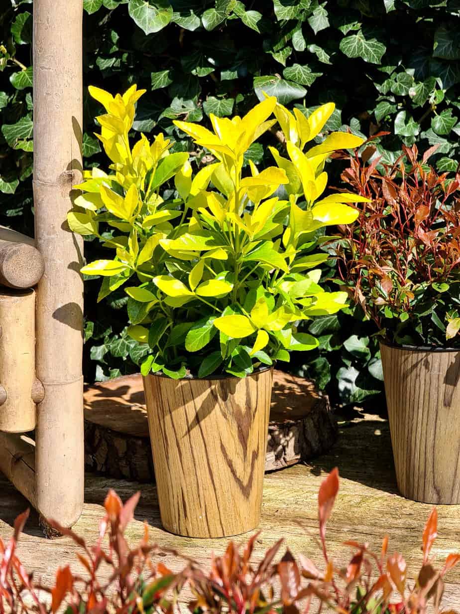 Euonymus japonicus El Dorado is met zijn grote, gele bladeren een opvallende verschijning in de tuin. De groei van El Dorado is bossig en opgaand met een hoogte van ca. 60 cm en een breedte van 25 cm. Winterhard tot wel -15° C. Deze Euonymus staat graag in de zon, vraagt weinig onderhoud en is mooi als solitair op balkon of terras maar ook als compacte heg, in massabeplanting of in een gemengde container.