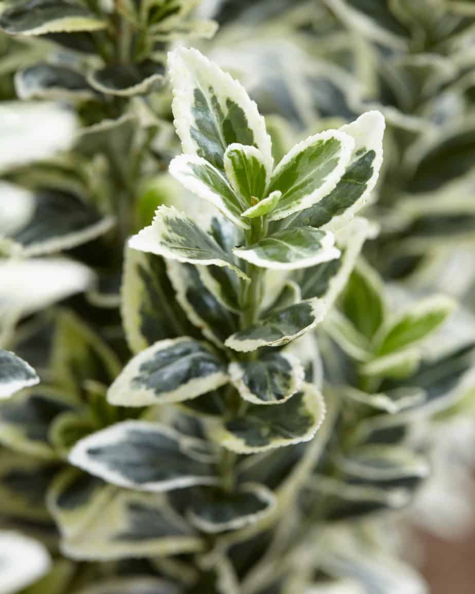 De Euonymus japonicus ‘White Spire’ (Kardinaalsmuts) is een prachtige buxus vervanger. De Kardinaalsmuts is zeer geschikt voor afscheiding van bijvoorbeeld een perk mooi fris groen van kleur. De maximale  hoogte is ongeveer 80 centimeter.  Het blad bont groen-wit en is wat langwerpig en mooi fris glanzend. Er komen geen bloemen aan de plant.