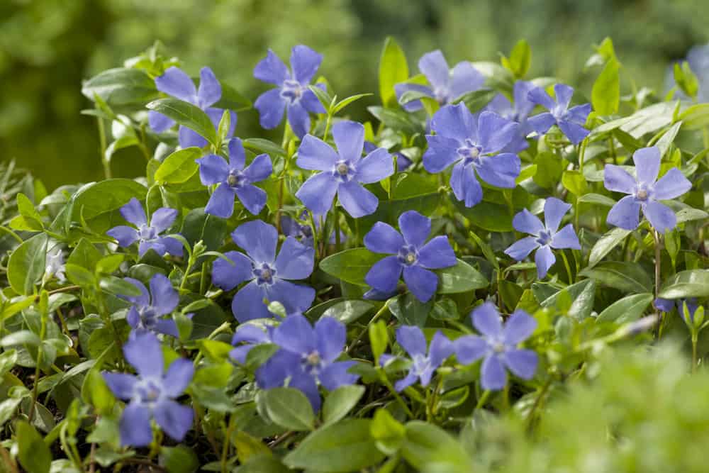 Vinca Minor groeit snel en blijft het hele jaar door groen. Het is daarom een ideale bodembedekker. Binnen een mum van tijd vormt zich een aaneengesloten groen tapijt. Vinca Minor wordt veel gebruikt voor vullen van grote vakken in de plantenborder. Of als onderbeplanting bij heesters en bomen.